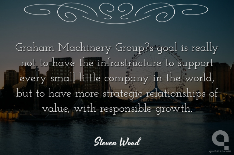 Graham Machinery Group?s goal is really not to have the infrastructure to support every small little company in the world, but to have more strategic relationships of value, with responsible growth.