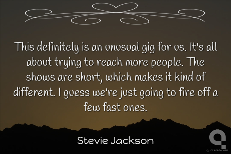 This definitely is an unusual gig for us. It's all about trying to reach more people. The shows are short, which makes it kind of different. I guess we're just going to fire off a few fast ones.