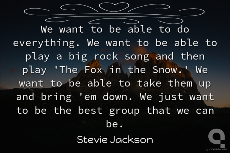 We want to be able to do everything. We want to be able to play a big rock song and then play 'The Fox in the Snow.' We want to be able to take them up and bring 'em down. We just want to be the best group that we can be.