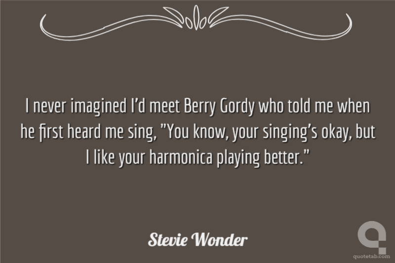I never imagined I'd meet Berry Gordy who told me when he first heard me sing, "You know, your singing's okay, but I like your harmonica playing better."