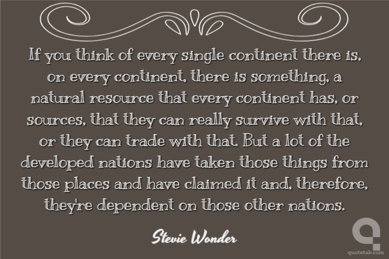 If you think of every single continent there is, on every continent, there is something, a natural resource that every continent has, or sources, that they can really survive with that, or they can trade with that. But a lot of the developed nations have taken those things from those places and have claimed it and, therefore, they're dependent on those other nations.
