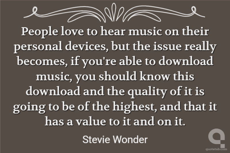 People love to hear music on their personal devices, but the issue really becomes, if you're able to download music, you should know this download and the quality of it is going to be of the highest, and that it has a value to it and on it.