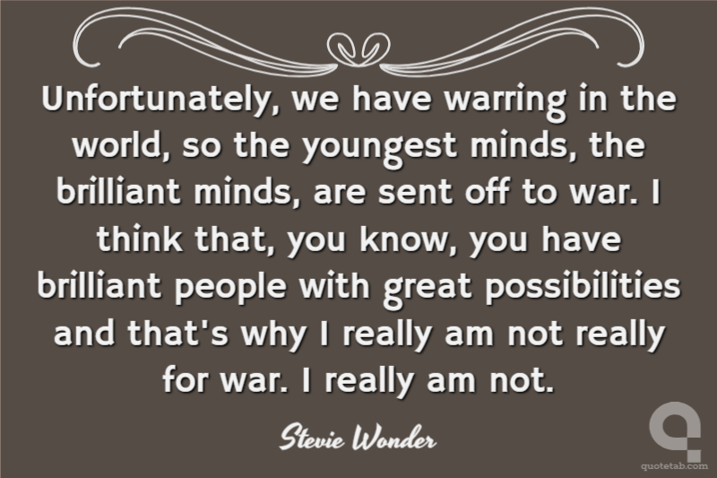 Unfortunately, we have warring in the world, so the youngest minds, the brilliant minds, are sent off to war. I think that, you know, you have brilliant people with great possibilities and that's why I really am not really for war. I really am not.