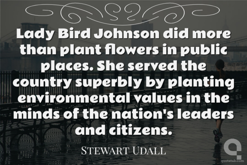 Lady Bird Johnson did more than plant flowers in public places. She served the country superbly by planting environmental values in the minds of the nation's leaders and citizens.