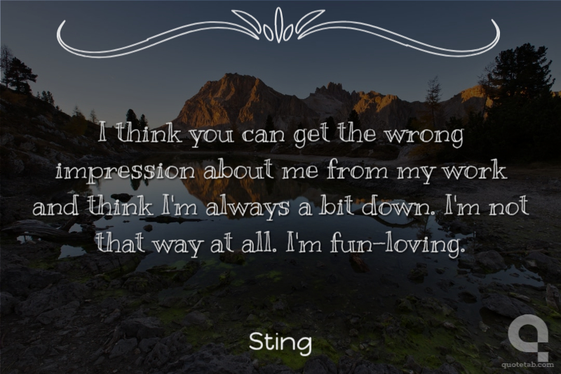 I think you can get the wrong impression about me from my work and think I'm always a bit down. I'm not that way at all. I'm fun-loving.