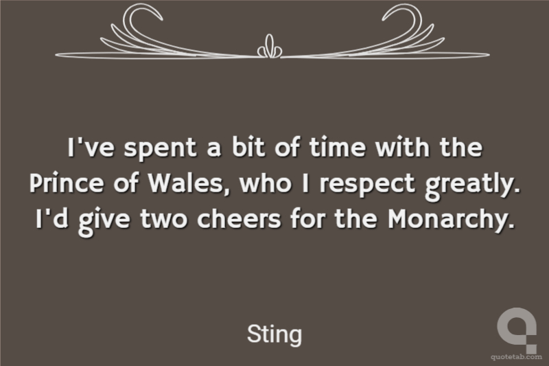 I've spent a bit of time with the Prince of Wales, who I respect greatly. I'd give two cheers for the Monarchy.