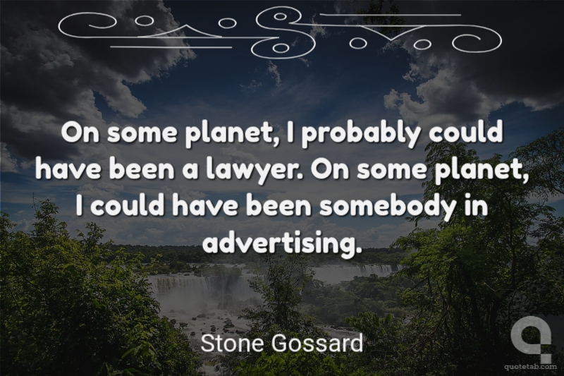 On some planet, I probably could have been a lawyer. On some planet, I could have been somebody in advertising.
