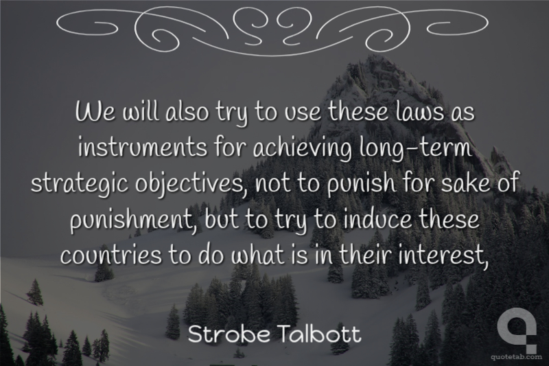 We will also try to use these laws as instruments for achieving long-term strategic objectives, not to punish for sake of punishment, but to try to induce these countries to do what is in their interest,