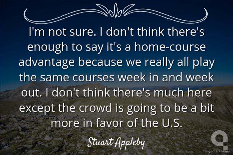 I'm not sure. I don't think there's enough to say it's a home-course advantage because we really all play the same courses week in and week out. I don't think there's much here except the crowd is going to be a bit more in favor of the U.S.