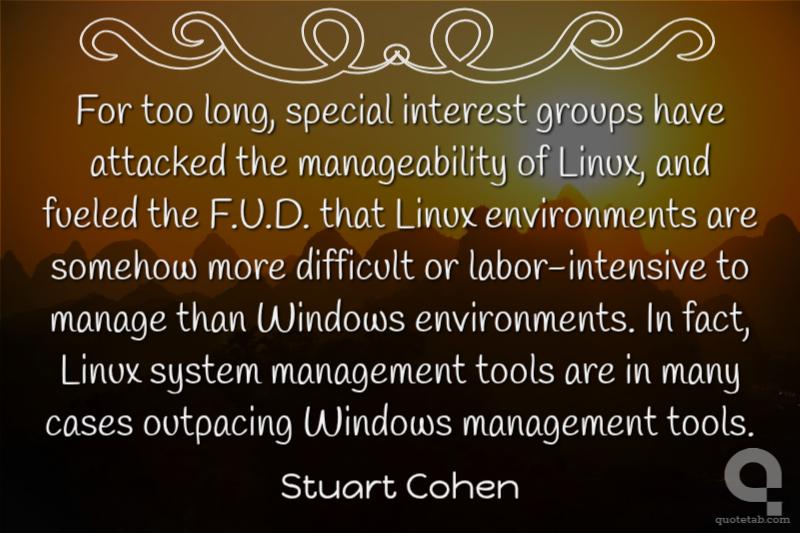 For too long, special interest groups have attacked the manageability of Linux, and fueled the F.U.D. that Linux environments are somehow more difficult or labor-intensive to manage than Windows environments. In fact, Linux system management tools are in many cases outpacing Windows management tools.