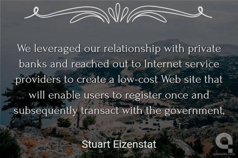 We leveraged our relationship with private banks and reached out to Internet service providers to create a low-cost Web site that will enable users to register once and subsequently transact with the government,