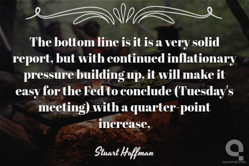 The bottom line is it is a very solid report, but with continued inflationary pressure building up, it will make it easy for the Fed to conclude (Tuesday's meeting) with a quarter-point increase,