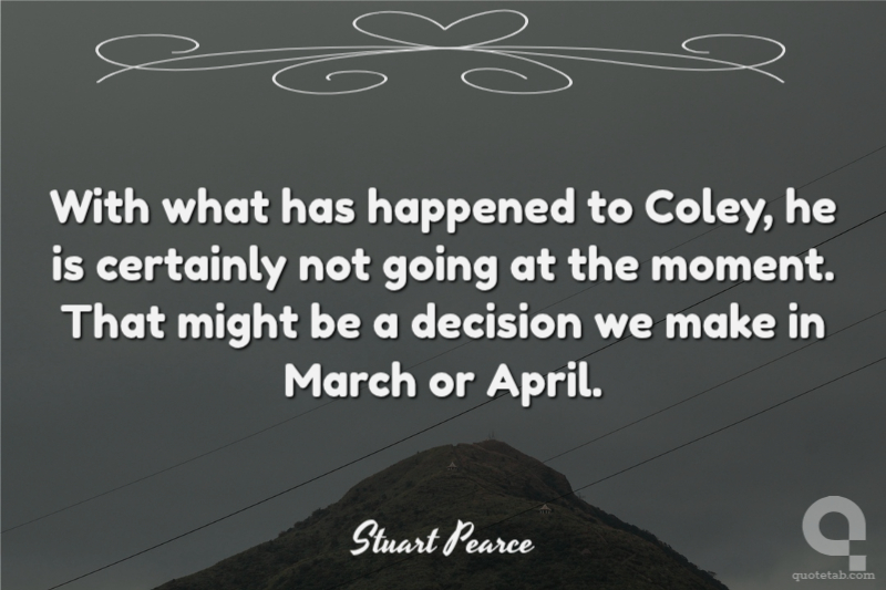 With what has happened to Coley, he is certainly not going at the moment. That might be a decision we make in March or April.