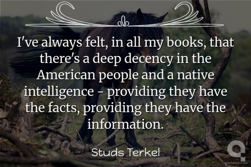 I've always felt, in all my books, that there's a deep decency in the American people and a native intelligence - providing they have the facts, providing they have the information.