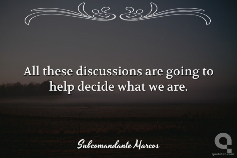 As to whether Marcos is gay: Marcos is gay in San Francisco, black in South Africa, an Asian in Europe, a Chicano in San Ysidro, an anarchist in Spain, a Palestinian in Israel, a Mayan Indian in the streets of San Cristobal,… a Jew in Germany, a Gypsy in Poland, a Mohawk in Quebec, a pacifist in Bosnia, a single woman on the Metro at 10pm, a peasant without land, a gang member in the slums, an unemployed worker, an unhappy student and, of course, a Zapatista in the mountains.