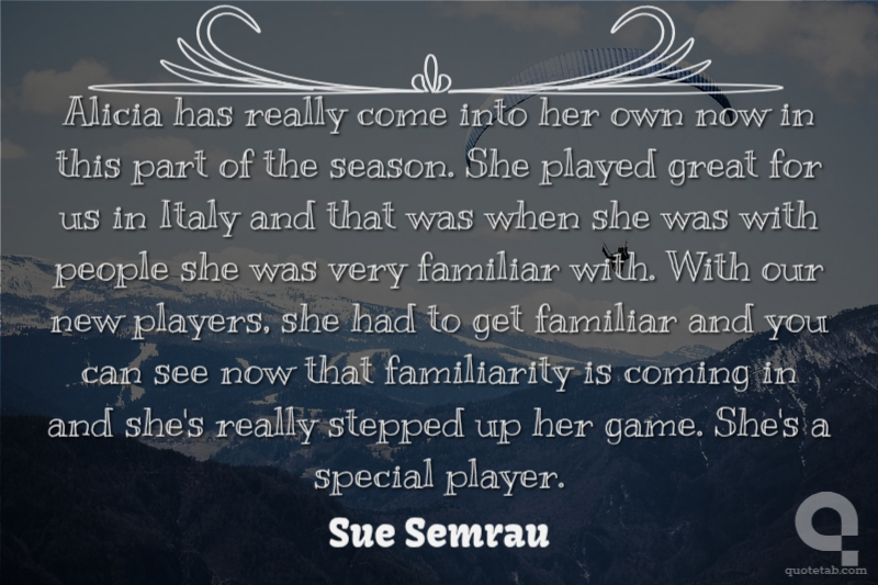 Alicia has really come into her own now in this part of the season. She played great for us in Italy and that was when she was with people she was very familiar with. With our new players, she had to get familiar and you can see now that familiarity is coming in and she's really stepped up her game. She's a special player.