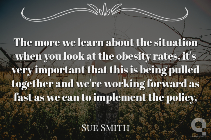 The more we learn about the situation when you look at the obesity rates, it's very important that this is being pulled together and we're working forward as fast as we can to implement the policy,