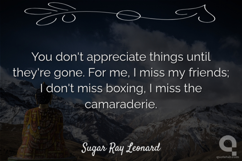 You don't appreciate things until they're gone. For me, I miss my friends; I don't miss boxing, I miss the camaraderie.