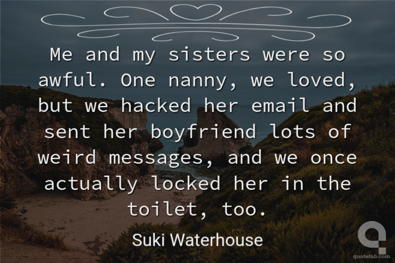 Me and my sisters were so awful. One nanny, we loved, but we hacked her email and sent her boyfriend lots of weird messages, and we once actually locked her in the toilet, too.