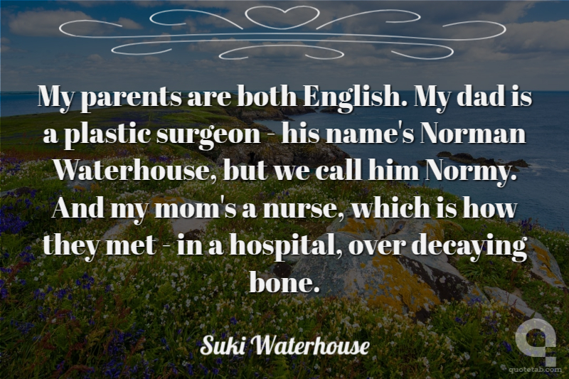 My parents are both English. My dad is a plastic surgeon - his name's Norman Waterhouse, but we call him Normy. And my mom's a nurse, which is how they met - in a hospital, over decaying bone.