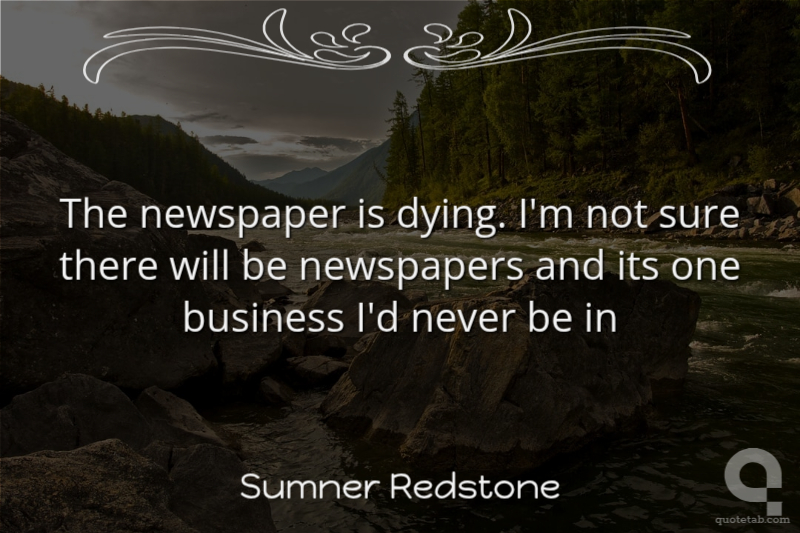 The newspaper is dying. I'm not sure there will be newspapers and its one business I'd never be in