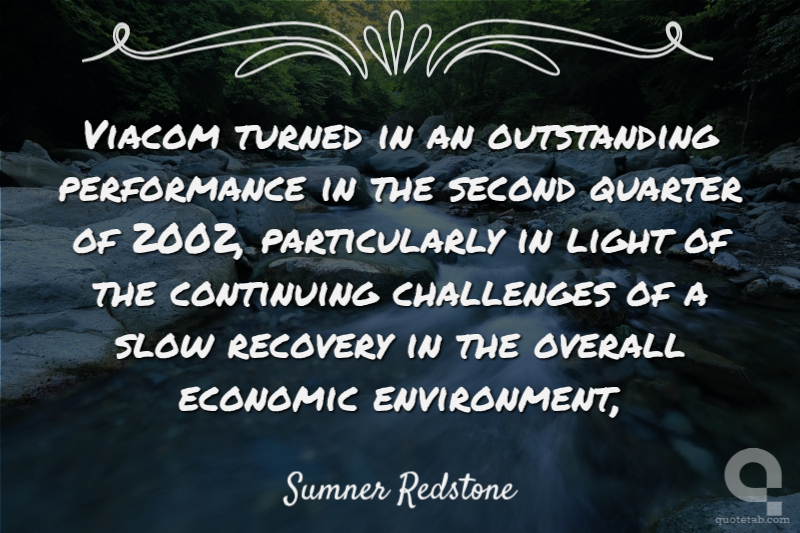 Viacom turned in an outstanding performance in the second quarter of 2002, particularly in light of the continuing challenges of a slow recovery in the overall economic environment,