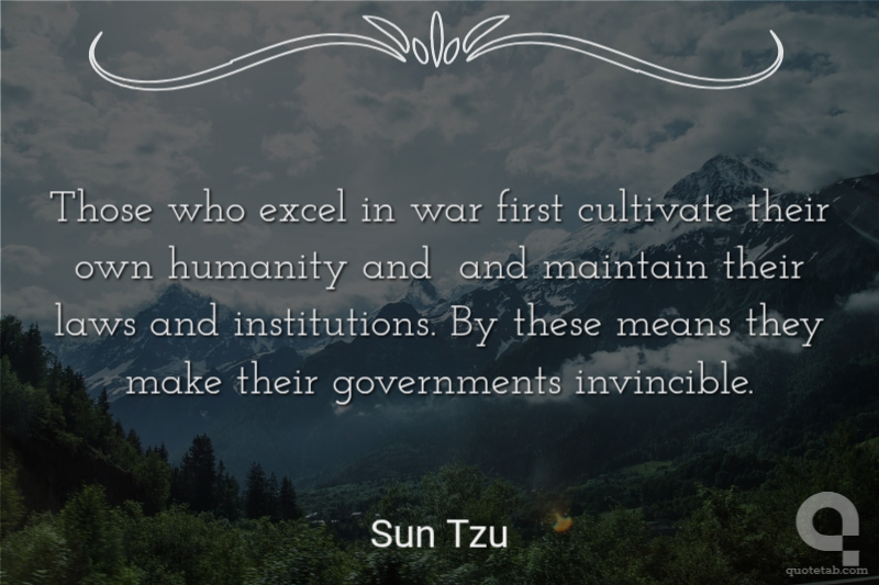 Those who excel in war first cultivate their own humanity and and maintain their laws and institutions. By these means they make their governments invincible.