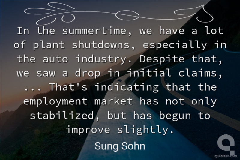 In the summertime, we have a lot of plant shutdowns, especially in the auto industry. Despite that, we saw a drop in initial claims, ... That's indicating that the employment market has not only stabilized, but has begun to improve slightly.