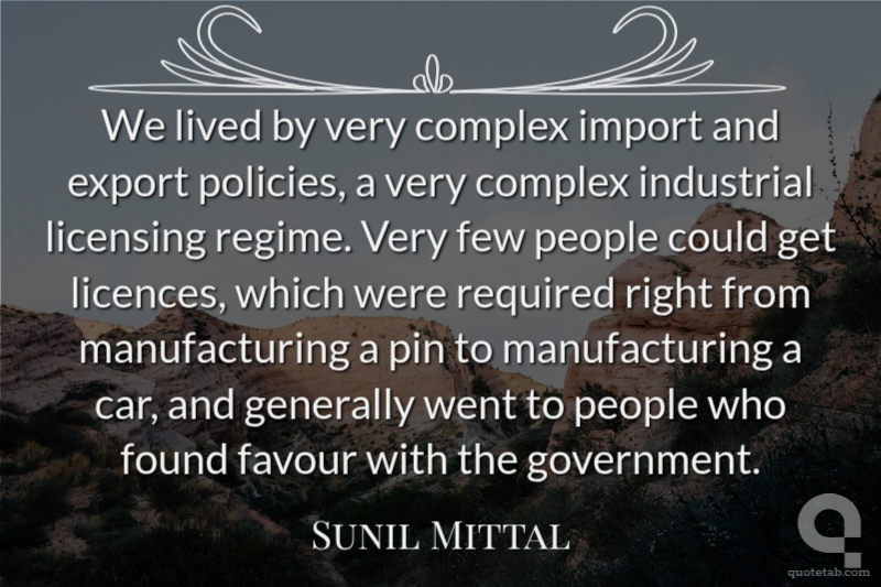 We lived by very complex import and export policies, a very complex industrial licensing regime. Very few people could get licences, which were required right from manufacturing a pin to manufacturing a car, and generally went to people who found favour with the government.