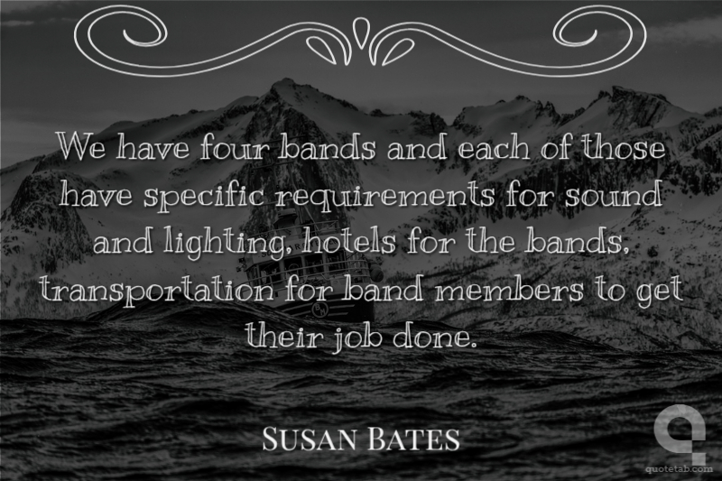 We have four bands and each of those have specific requirements for sound and lighting, hotels for the bands, transportation for band members to get their job done.