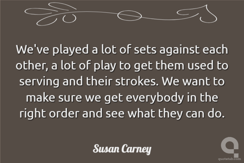 We've played a lot of sets against each other, a lot of play to get them used to serving and their strokes. We want to make sure we get everybody in the right order and see what they can do.