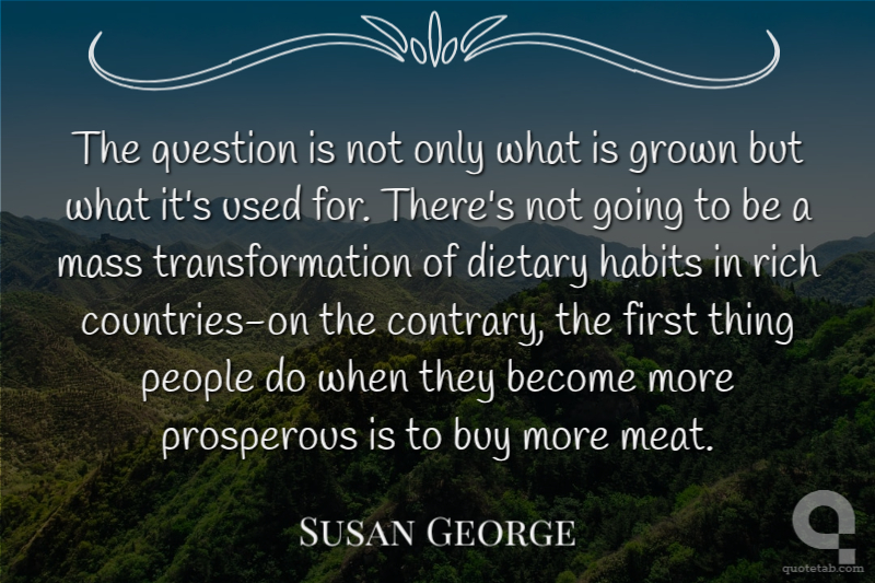 The question is not only what is grown but what it's used for. There's not going to be a mass transformation of dietary habits in rich countries-on the contrary, the first thing people do when they become more prosperous is to buy more meat.