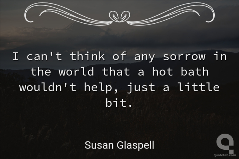 I can't think of any sorrow in the world that a hot bath wouldn't help, just a little bit.