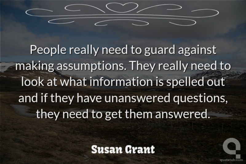 People really need to guard against making assumptions. They really need to look at what information is spelled out and if they have unanswered questions, they need to get them answered.