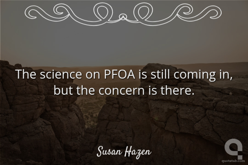 The science on PFOA is still coming in, but the concern is there, and so acting now to minimize future releases of PFOA is the right thing to do. It's the right thing to do for our health and our environment.