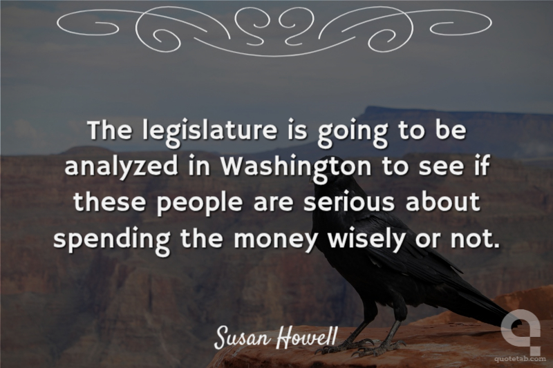 The legislature is going to be analyzed in Washington to see if these people are serious about spending the money wisely or not.