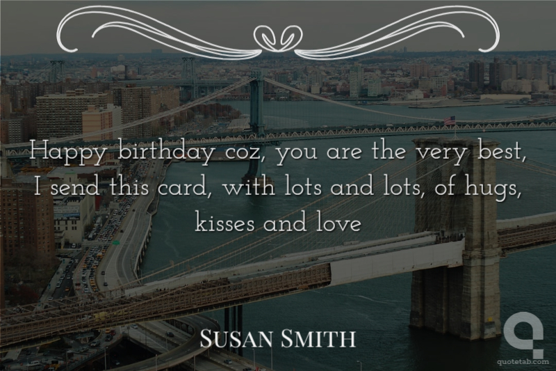 Happy birthday coz, you are the very best, I send this card, with lots and lots, of hugs, kisses and love