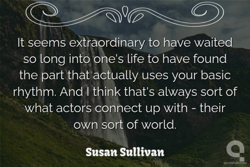 It seems extraordinary to have waited so long into one's life to have found the part that actually uses your basic rhythm. And I think that's always sort of what actors connect up with - their own sort of world.