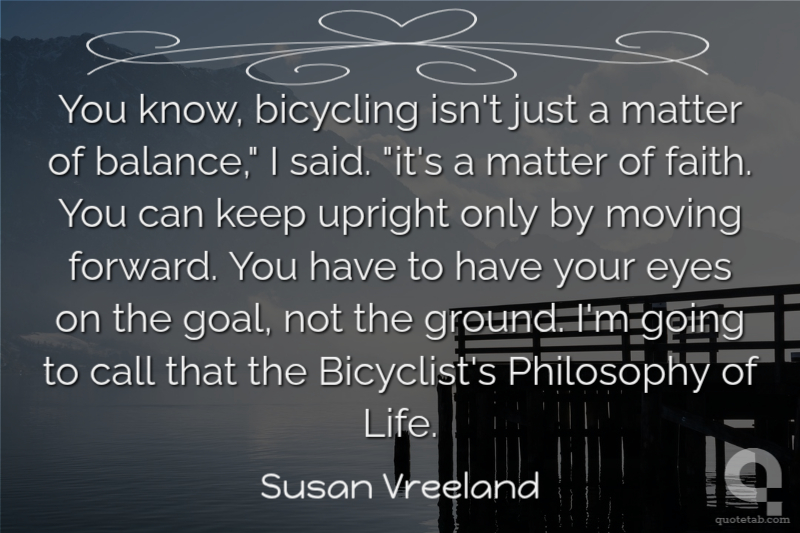 You know, bicycling isn't just a matter of balance," I said. "it's a matter of faith. You can keep upright only by moving forward. You have to have your eyes on the goal, not the ground. I'm going to call that the Bicyclist's Philosophy of Life.