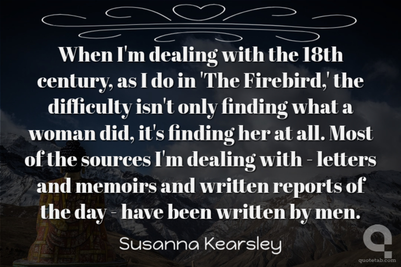 When I'm dealing with the 18th century, as I do in 'The Firebird,' the difficulty isn't only finding what a woman did, it's finding her at all. Most of the sources I'm dealing with - letters and memoirs and written reports of the day - have been written by men.