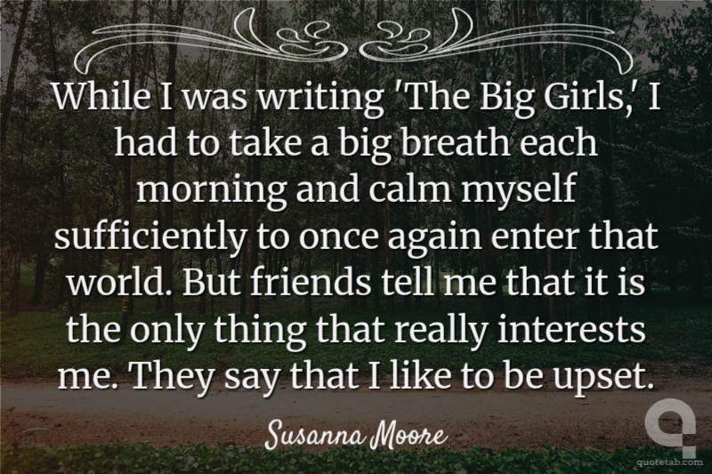 While I was writing 'The Big Girls,' I had to take a big breath each morning and calm myself sufficiently to once again enter that world. But friends tell me that it is the only thing that really interests me. They say that I like to be upset.