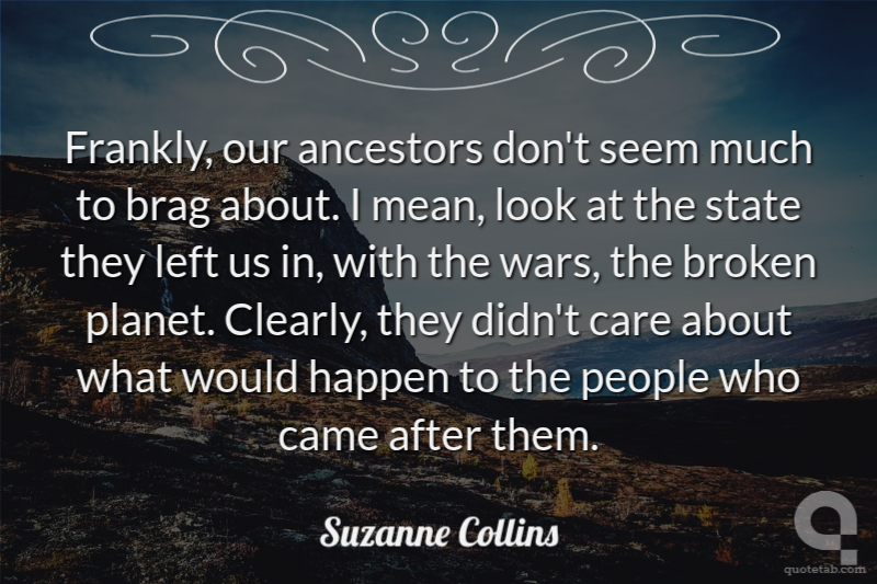 Frankly, our ancestors don't seem much to brag about. I mean, look at the state they left us in, with the wars, the broken planet. Clearly, they didn't care about what would happen to the people who came after them.