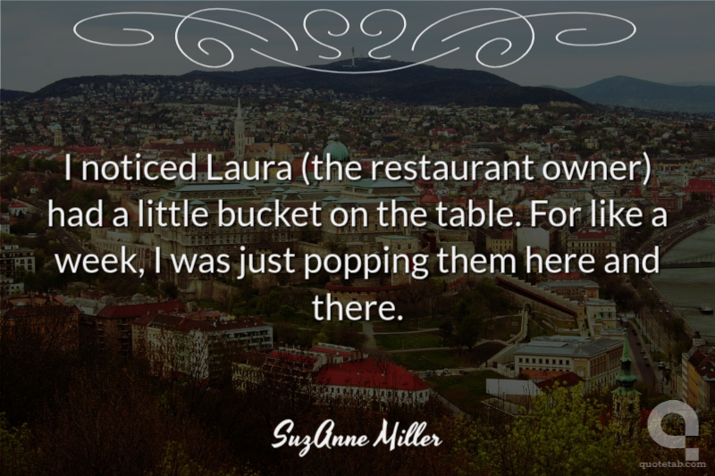 I noticed Laura (the restaurant owner) had a little bucket on the table. For like a week, I was just popping them here and there.