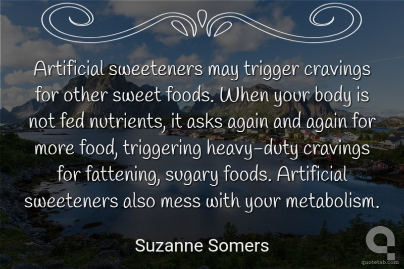 Artificial sweeteners may trigger cravings for other sweet foods. When your body is not fed nutrients, it asks again and again for more food, triggering heavy-duty cravings for fattening, sugary foods. Artificial sweeteners also mess with your metabolism.