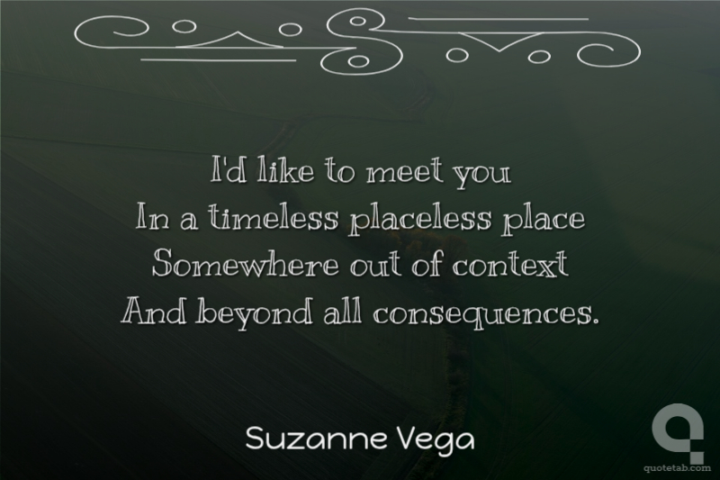I'd like to meet you/ In a timeless placeless place/ Somewhere out of context/ And beyond all consequences.