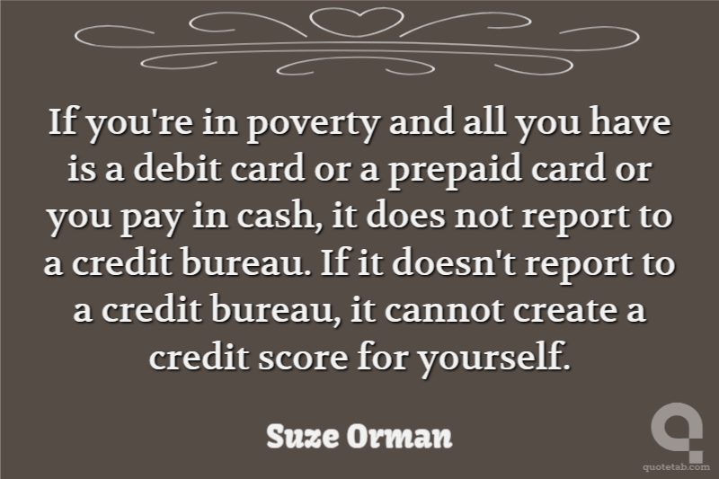 If you're in poverty and all you have is a debit card or a prepaid card or you pay in cash, it does not report to a credit bureau. If it doesn't report to a credit bureau, it cannot create a credit score for yourself.
