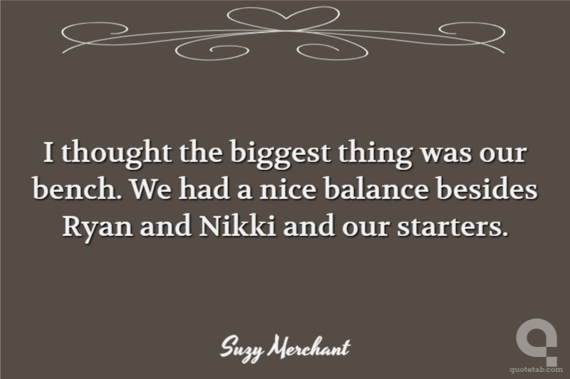 I thought the biggest thing was our bench. We had a nice balance besides Ryan and Nikki and our starters.