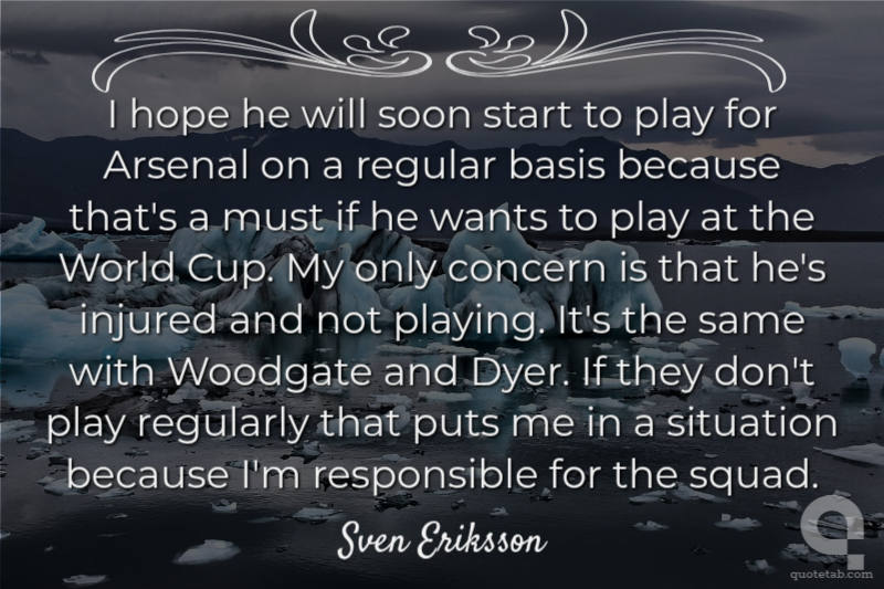 I hope he will soon start to play for Arsenal on a regular basis because that's a must if he wants to play at the World Cup. My only concern is that he's injured and not playing. It's the same with Woodgate and Dyer. If they don't play regularly that puts me in a situation because I'm responsible for the squad.