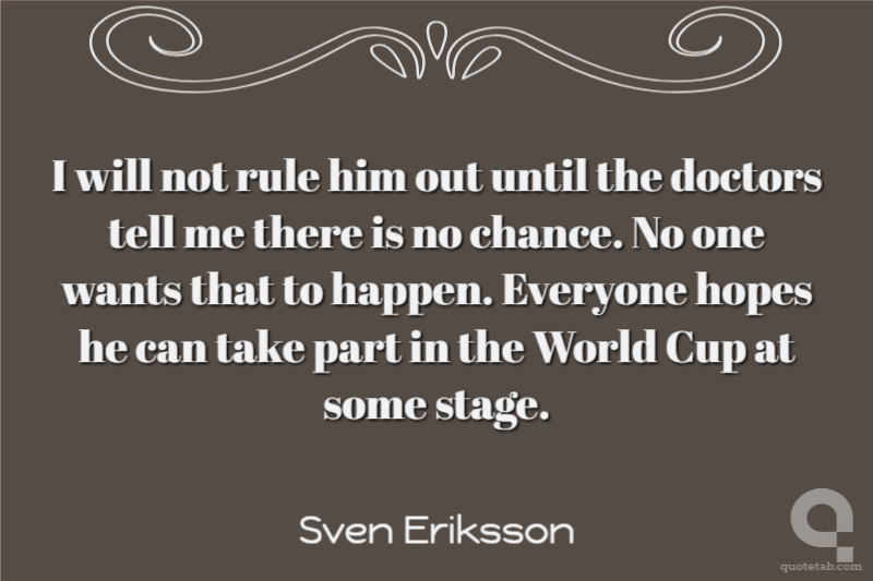 I will not rule him out until the doctors tell me there is no chance. No one wants that to happen. Everyone hopes he can take part in the World Cup at some stage.