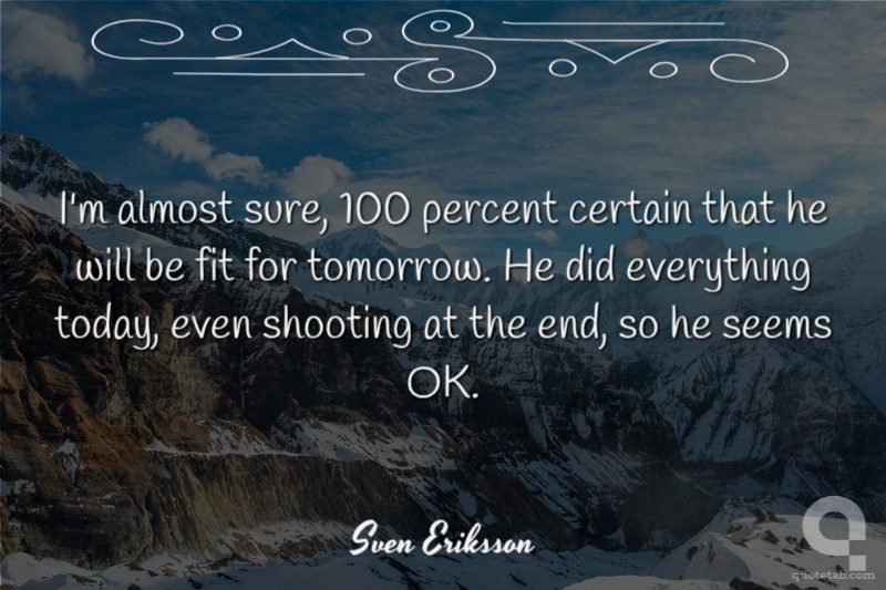I'm almost sure, 100 percent certain that he will be fit for tomorrow. He did everything today, even shooting at the end, so he seems OK.